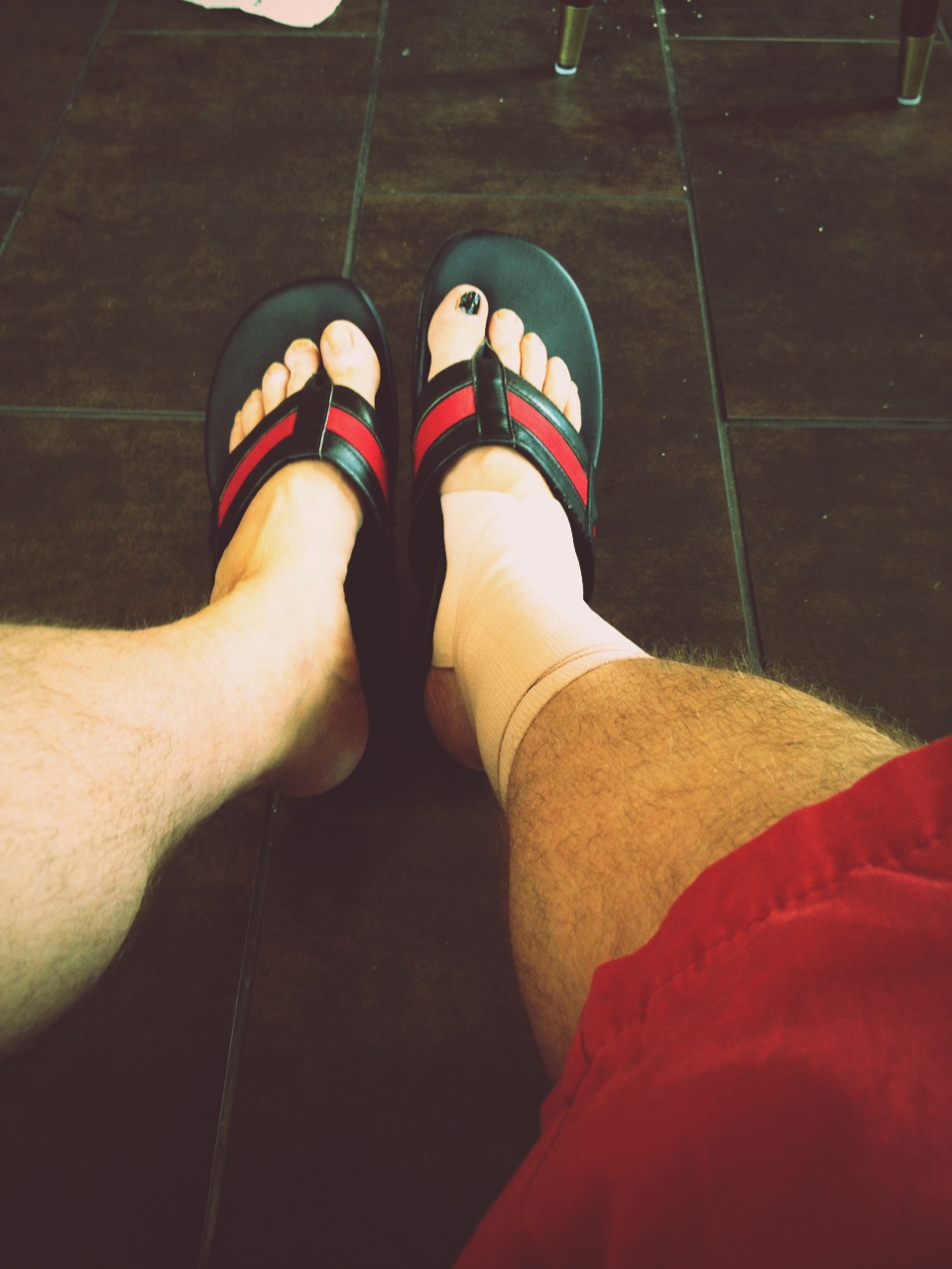 Last week I felt like I sprained my ankle. I came home from a festival and my ankle was swollen and felt crummy. I waited for it to go down on it’s own but it didn’t really do that. I went to the doctor and they agreed that I had sprained something. They told me there’s nothing I can do but keep it wrapped, put less strain on it and keep it elevated. This was such bullshit…I thought to myself! How in the hell do I start exercising and just start to get my body working only to suffer from a dumb thing like a sprained ankle? But, as with all things, it turned out fine. I took a week to relax and really let my ankle and leg recover completely. It worked…I’m back up and doing what I do best. (By the way, the toenail is black because I painted it that way…long story but ask me about it if you really wanna know.)